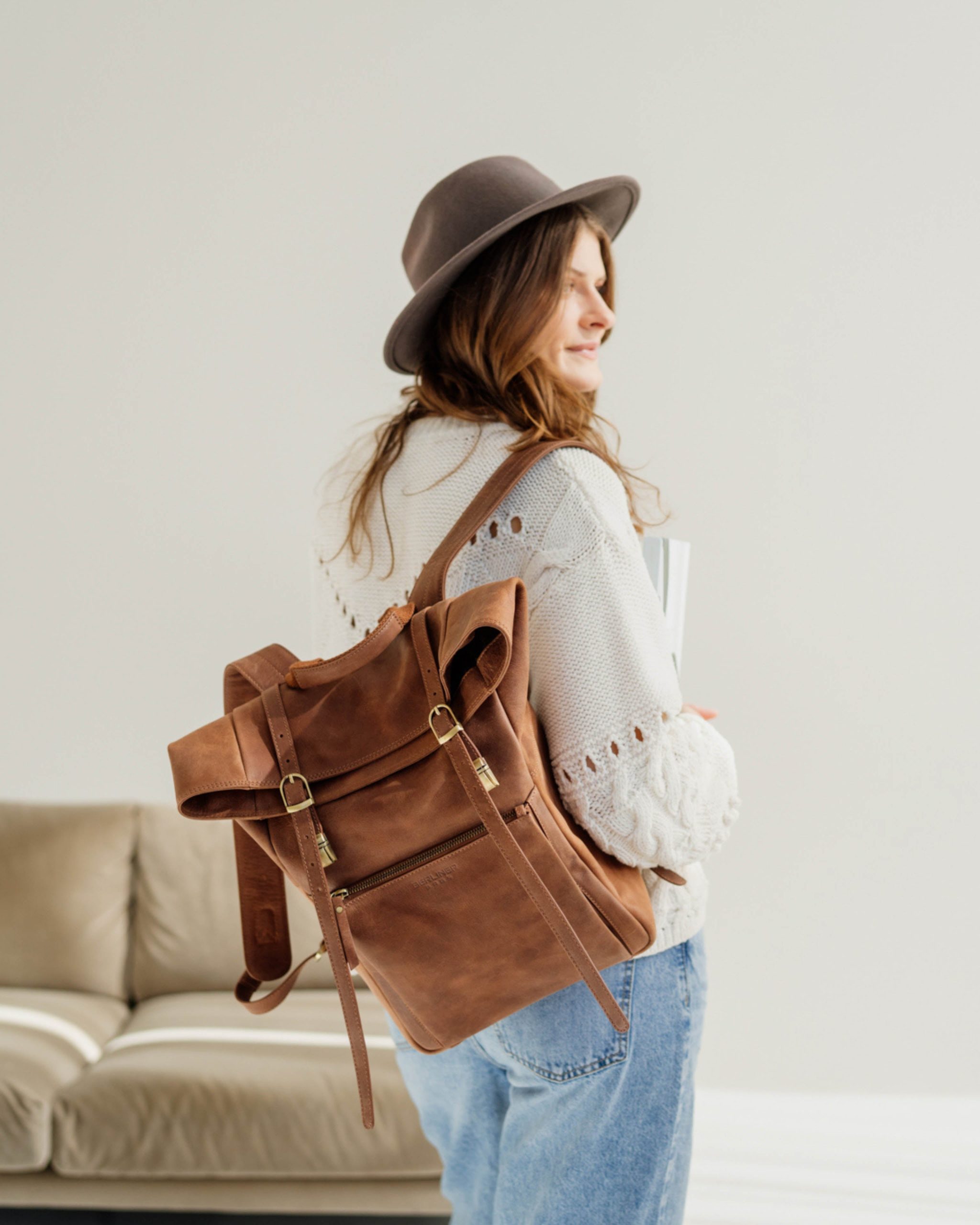 Meet Lille! This minimalist leather rucksack combines modern looks with durable manufacturing. Lille features a padded laptop compartment, key ring, and cellphone pocket. It will be your favorite fashion accessory and companion for work and leisure! Lille is designed to last for decades making it the perfect Slow Fashion backpack.