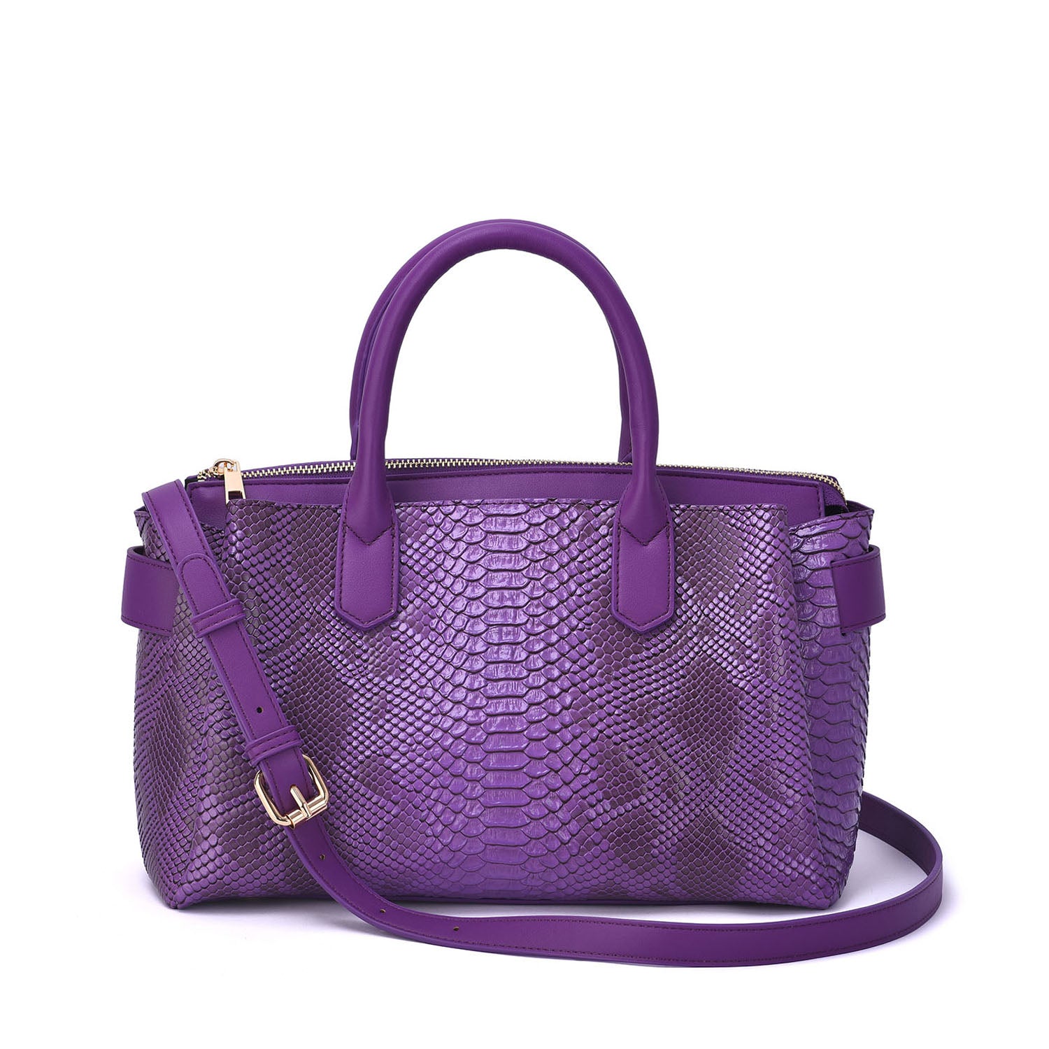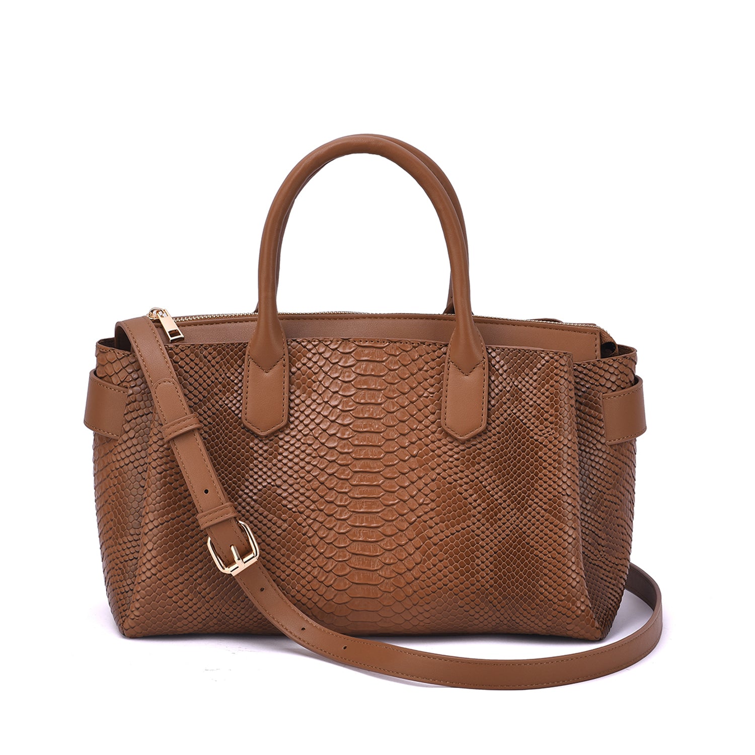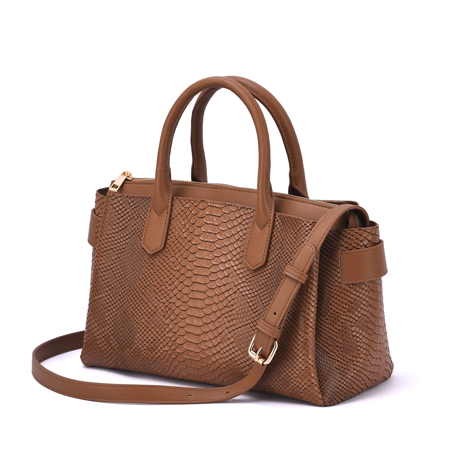 Structured with a generously sized interior, this satchel showcases the snakeskin embossed vegan leather. For organizational purposes, fit your daily essentials in any of the three compartments.