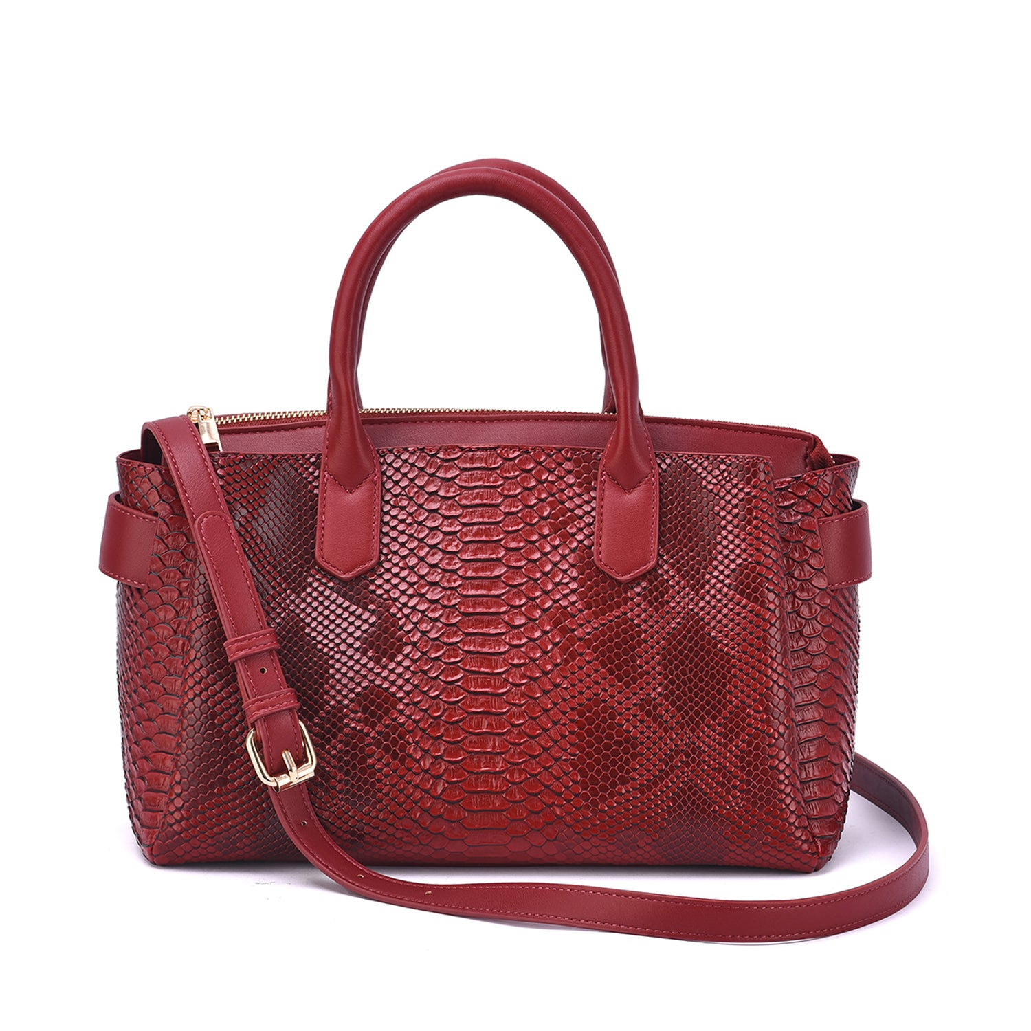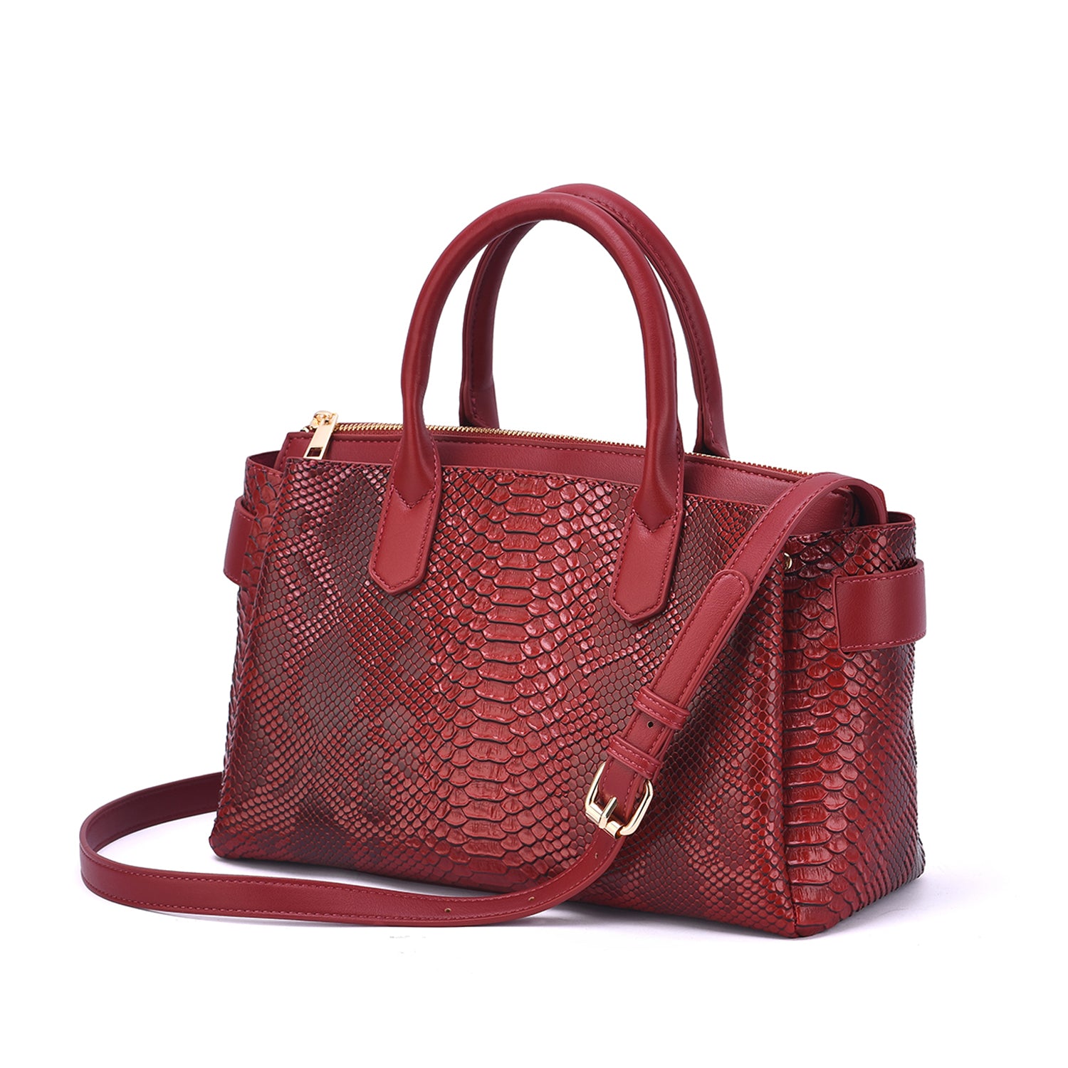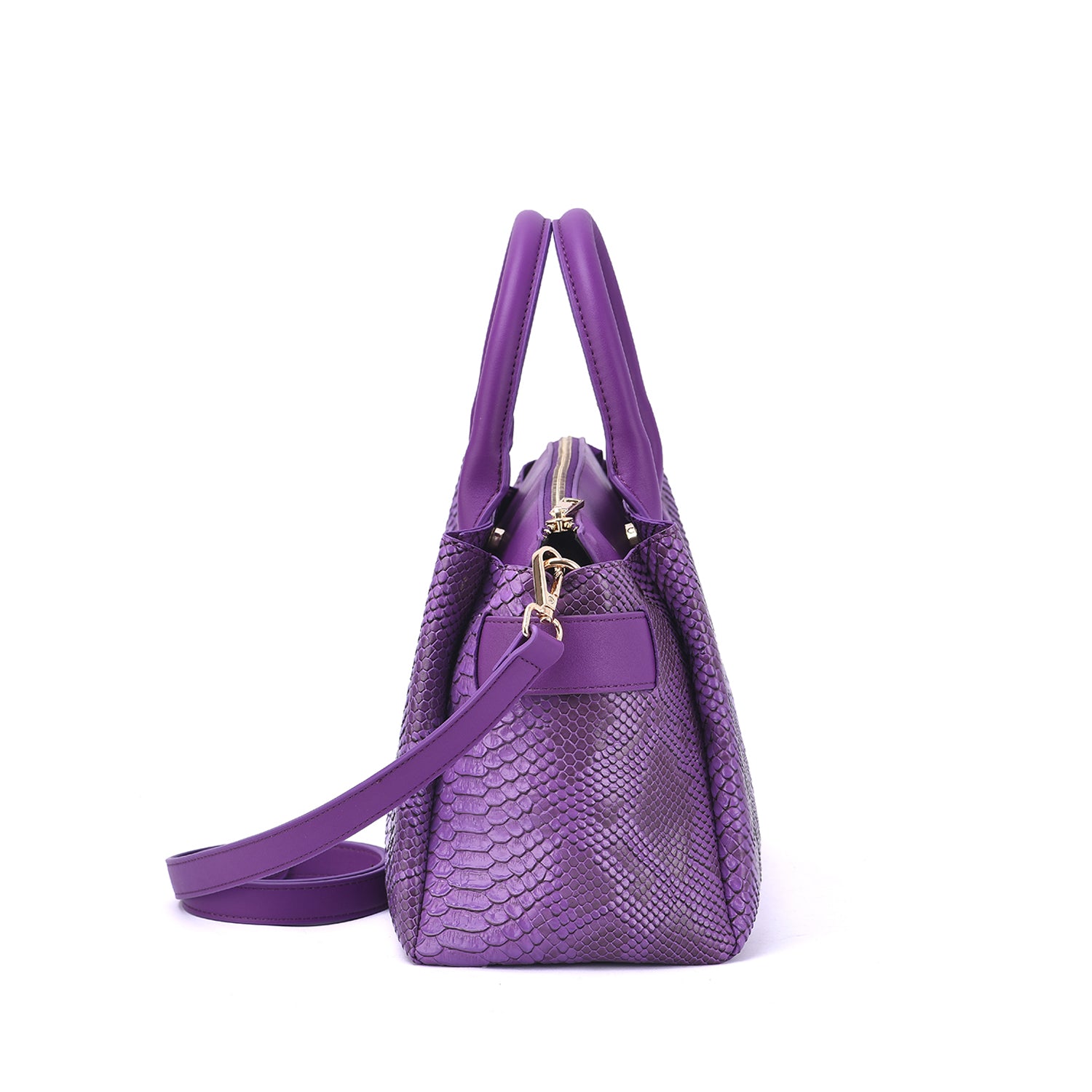 Structured with a generously sized interior, this satchel showcases the snakeskin embossed vegan leather. For organizational purposes, fit your daily essentials in any of the three compartments.