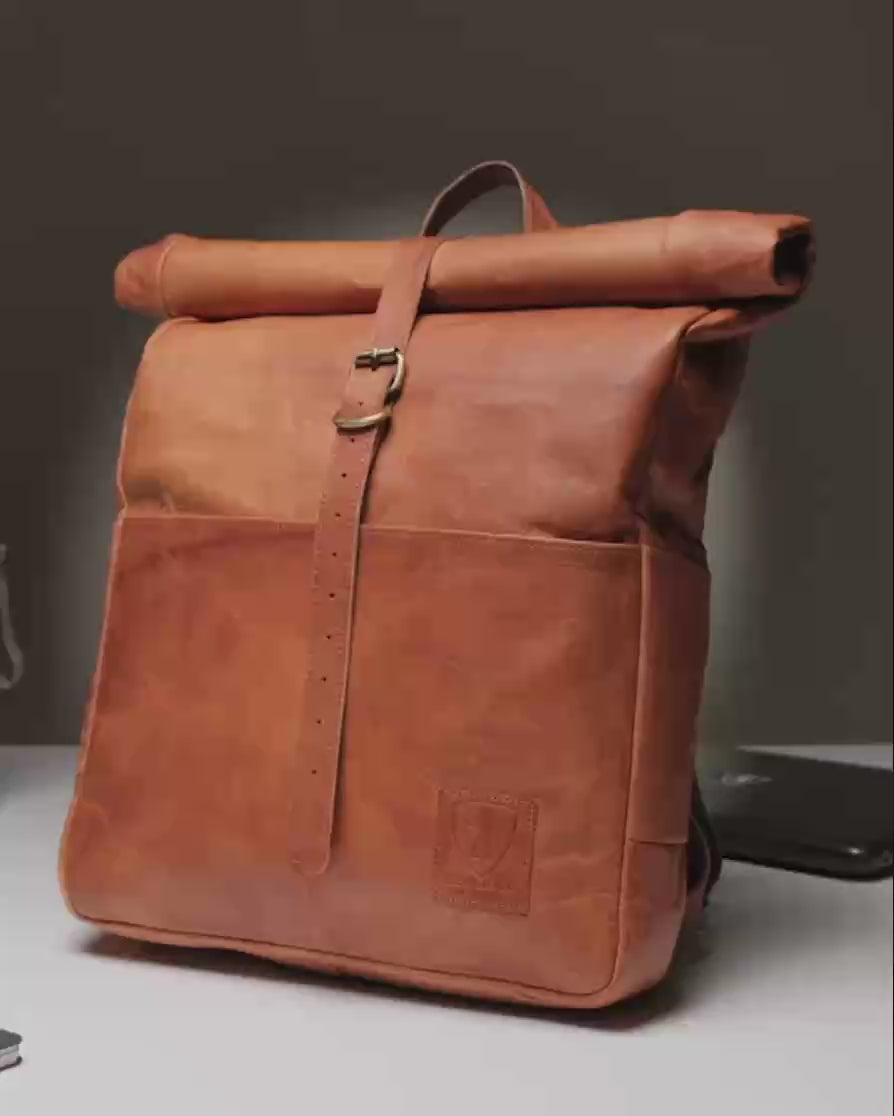 Meet Paris! Made of environmentally friendly, vegetable tanned leather and finished with stylish vintage details, Paris adds retro flair to every occasion. With its sturdy buckle, useful slip-in pockets, and adjustable straps, this bestselling backpack is the perfect companion for all your adventures. Thanks to the rolltop closure Paris’ size can be adjusted to suit your daily needs.