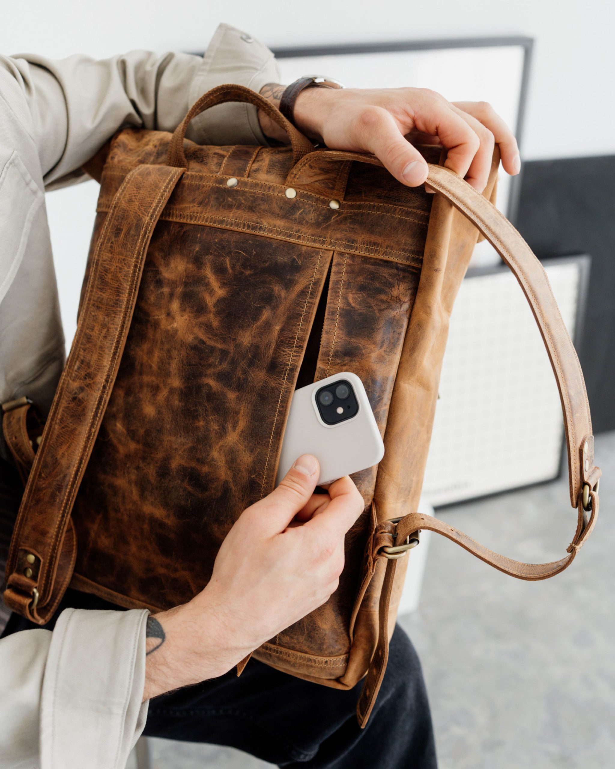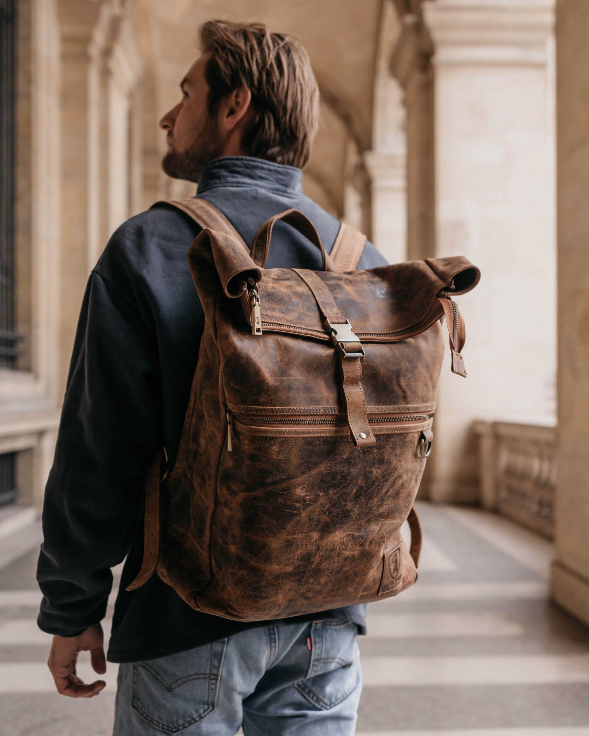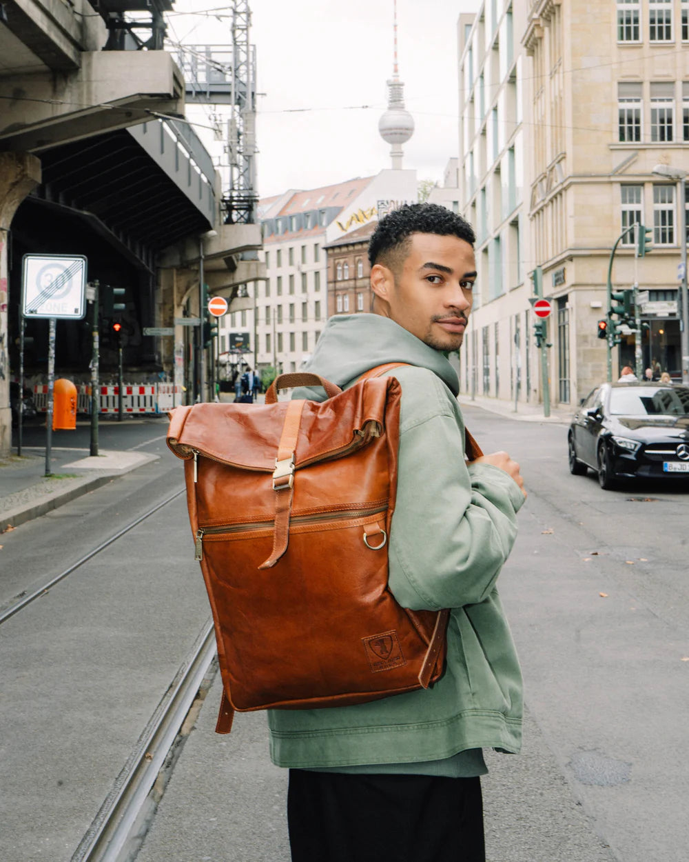 Meet Utrecht! Our bestselling backpack is the perfect embodiment of Slow Fashion. This roll top rucksack combines durable materials, and functional design, with a stylish vintage look. With Utrecht’s laptop compartment, handy inside pockets, key ring, and anti-theft pocket you’ll be well prepared for every situation. From the office, to the gym, to a weekend trip, Utrecht can really do it all.